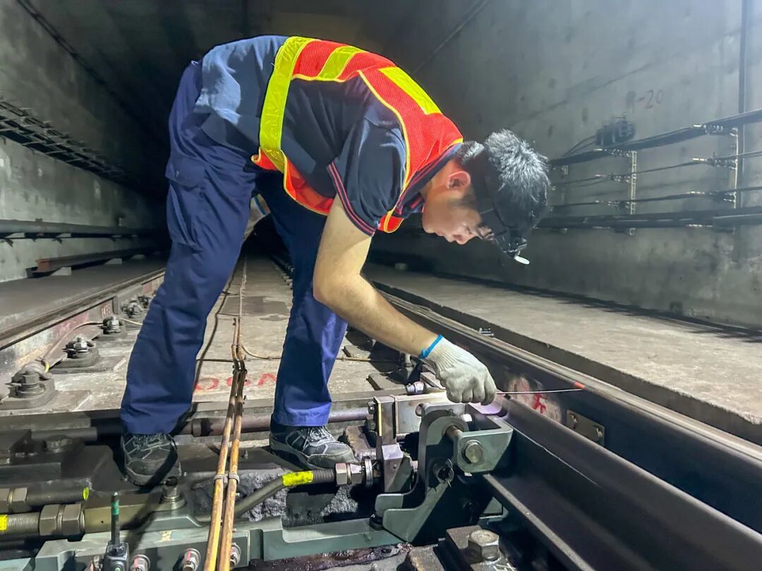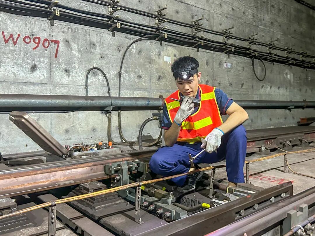 为守住“双节”出行设备安全关,王楚豪早在节前两周便牵头开展专项设备普查。凌晨地铁停运后,他带着工具包逐站巡查,从道岔的机械部件到电气连接,从表示杆的紧固情况到油缸的密封性能,均逐一检测,验证每一项参数是否处于标准范围,并做好记录。凭借多年的现场经验,他能从微弱的电流波动或声音异常中预判隐患,并在这次普查中及时处理了接口松动、绝缘磨损等潜在问题。双节客流高峰前夕的一次巡检中,他通过道岔监测系统敏锐捕捉到异常:厦滘站道岔W0907道岔副机反位缺口数值超过标准范围。当天凌晨地铁停运后,他立即携带工器具赶赴现场排查,确认道岔各项参数,检查各传动杆件,确认无变形、松动,多次操作道岔无异常。一系列“现场检测正常”与“系统数据异常”之间存在矛盾,王楚豪没有轻易放过这一情况。他通过监测再次分析新影宝,对比设备参数,最终分析原因为副机掉线后重联,时钟与主机不同步,造成缺口识别超限,完成软件重启后恢复。直到确认系统显示与设备实际状态完全一致才放心。从发现异常到精准溯源的处置,体现出王楚豪在排查设备隐患过程中的严谨和细致,有效地夯实了设备可靠运行的根基。